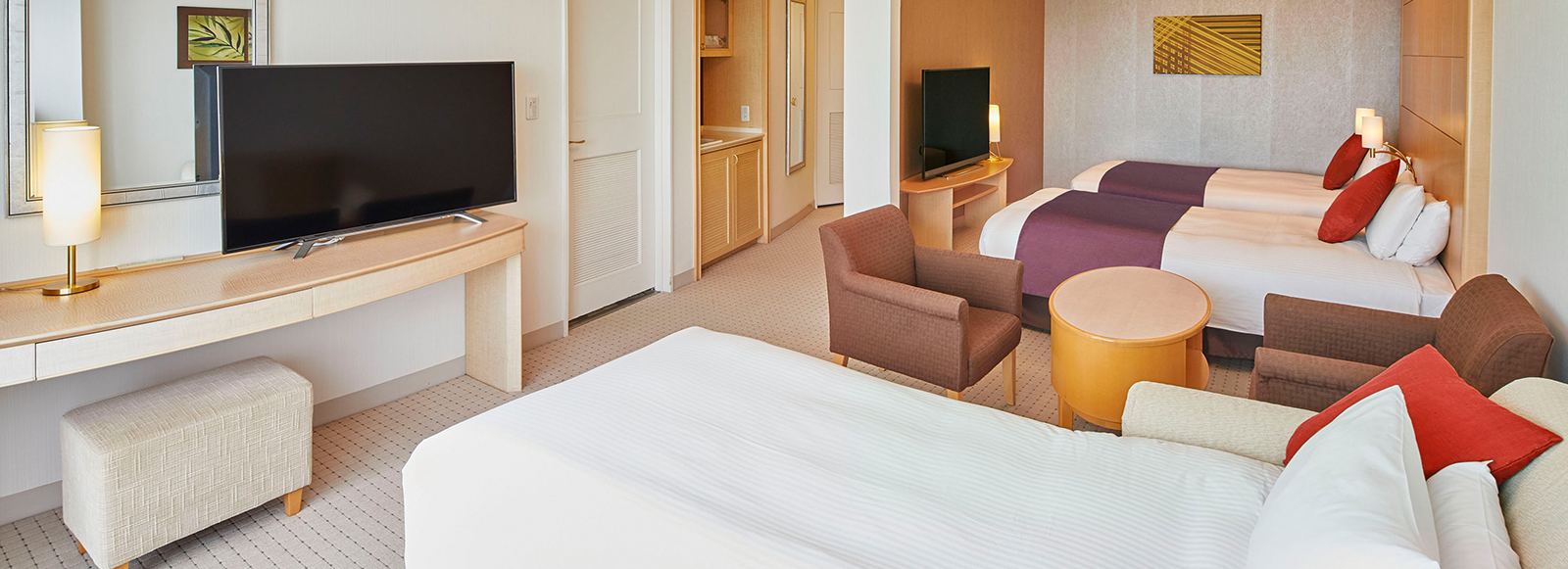| ベッド数 | ツインタイプ ベッド 2台<120(W)×200(L)>、簡易ベッド 1台 |