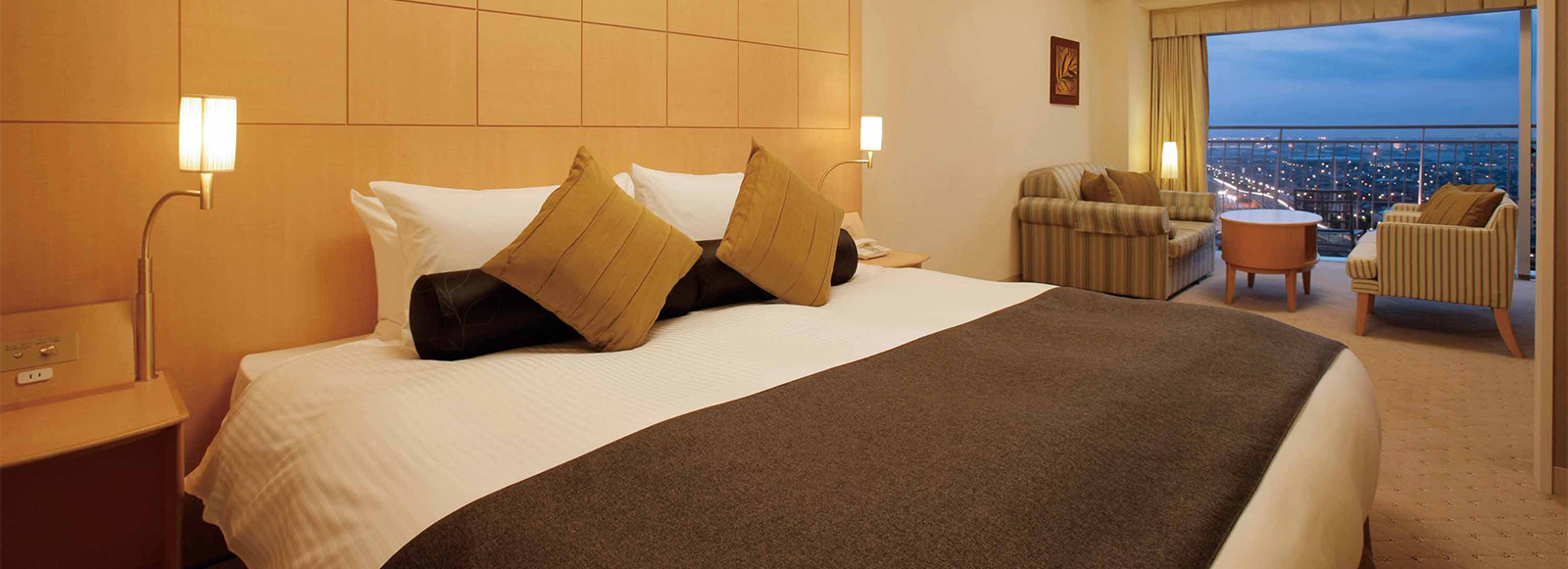 13階以上に位置し、お部屋の広さはゆとりの54m2、ベッドは200 x 200cmのキングサイズです。ベイエリアを一望するバルコニーでもお寛ぎいただけます。