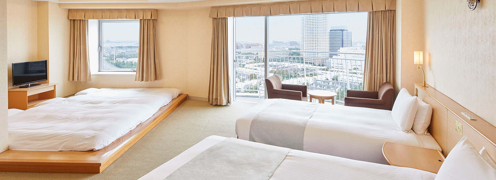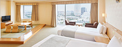 素足で足を伸ばし、ゆったりと寛げる「和洋室 Aタイプ」。小さなお子様連れからご年配の方まで快適にお過ごしいただけます。